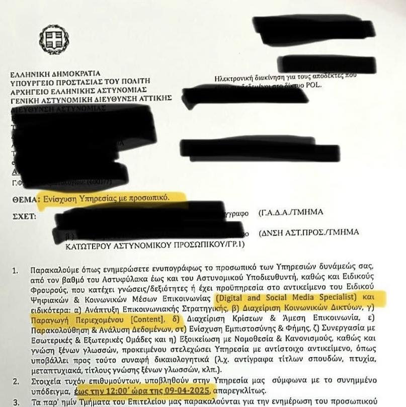 Ζητάνε για τη στελέχωση μιας δημόσιας υπηρεσίας, ξένη γλώσσα, πτυχία , μεταπτυχιακά κλπ…