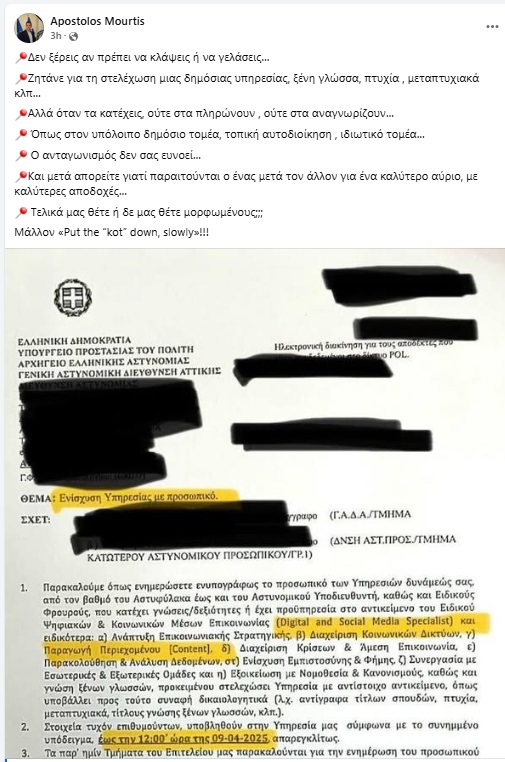 Ο Πρόεδρος της Ένωσης Αστυνομικών Ημαθίας κ. Απόστολος Μούρτης σε ανάρτηση σε social media επισημαίνει τα εξής: