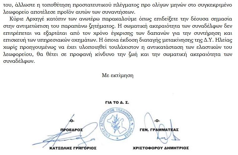 Το έγγραφο της Ένωσης Αστυνομικών Ηλείας: