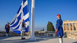 * Στις 18:41 επίσημη υποστολή της σημαίας στον Ιερό Βράχο της Ακρόπολης και ταυτόχρονα ρίψη 21 χαιρετιστήριων βολών από το πυροβολείο του Λυκαβηττού.