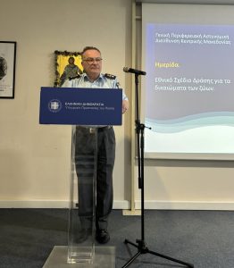 Κατά την έναρξη της ημερίδας χαιρετισμό πραγματοποίησε ο Γενικός Περιφερειακός Αστυνομικός Διευθυντής Κεντρικής Μακεδονίας, Ταξίαρχος Ηλίας Σκανδάλης, επισημαίνοντας τη σπουδαιότητα της αγαστής συνεργασίας όλων των εμπλεκόμενων Αρχών και Φορέων.