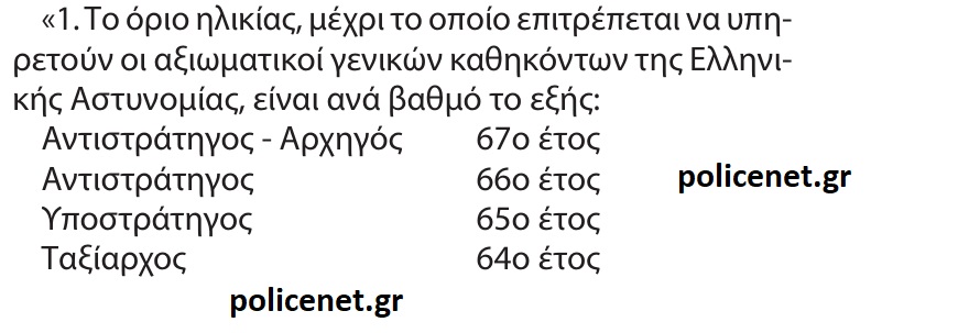 Το εν λόγω άρθρο 49 αφορά τις αποστρατείες λόγω ορίου ηλικίας.