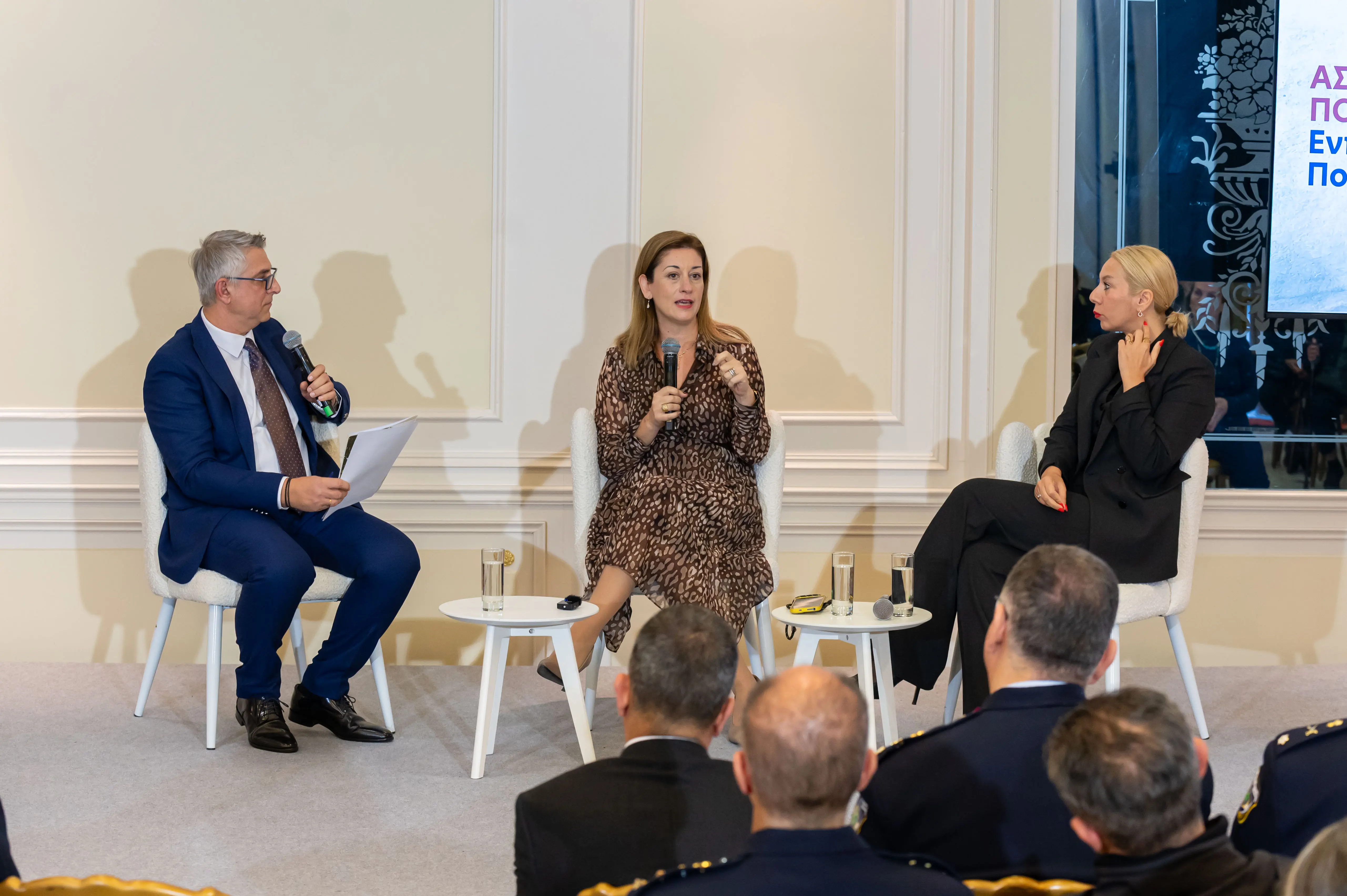 Στη συνέχεια ακολούθησε συζήτηση με θέμα: «Οι κοινωνικές διαστάσεις της βίας και παραβατικότητας», την οποία συντόνισε ο δημοσιογράφος Ηλίας Παπαϊωάννου και συμμετείχαν η Προϊστάμενη του Τμήματος Καινοτόμων Δράσεων και Στρατηγικής της Διεύθυνσης Δίωξης Κυβερνοεγκλήματος, Αστυνόμος Α’ Αιμιλία Δουκέλη και η επικεφαλής της Υποδιεύθυνσης Προστασίας Ανηλίκων της Διεύθυνσης Δίωξης και Εξιχνίασης Εγκλημάτων Γ.Α.Δ.Α., Αστυνόμος Α’ Κωνσταντίνα Κωστάκου.