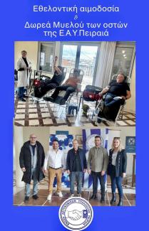 Στις, 04 Δεκεμβρίου 2024, η Ένωση μας πραγματοποίησε, στο αμφιθέατρο της Διεύθυνσης Αστυνομίας Πειραιά, ομαδική εθελοντική αιμοδοσία και ταυτόχρονη πραγματοποίηση εθελοντικής δωρεάς μυελού των οστών από τον Σύλλογο Όραμα Ελπίδας για την Τράπεζα Εθελοντών Δοτών Μυελού των Οστών της Ογκολογικής Μονάδας Παίδων «Μαριάννα Β. Βαρδινογιάννη – ΕΛΠΙΔΑ» και το Νοσοκομείο Παίδων «Η Αγία Σοφία». Οι συναδέλφισσες και συνάδελφοι προσήλθαν αποδεικνύοντας ότι οι αστυνομικοί διακρίνονται για την ευαισθησία τους και για το αίσθημα προσφοράς στο κοινωνικό σύνολο.