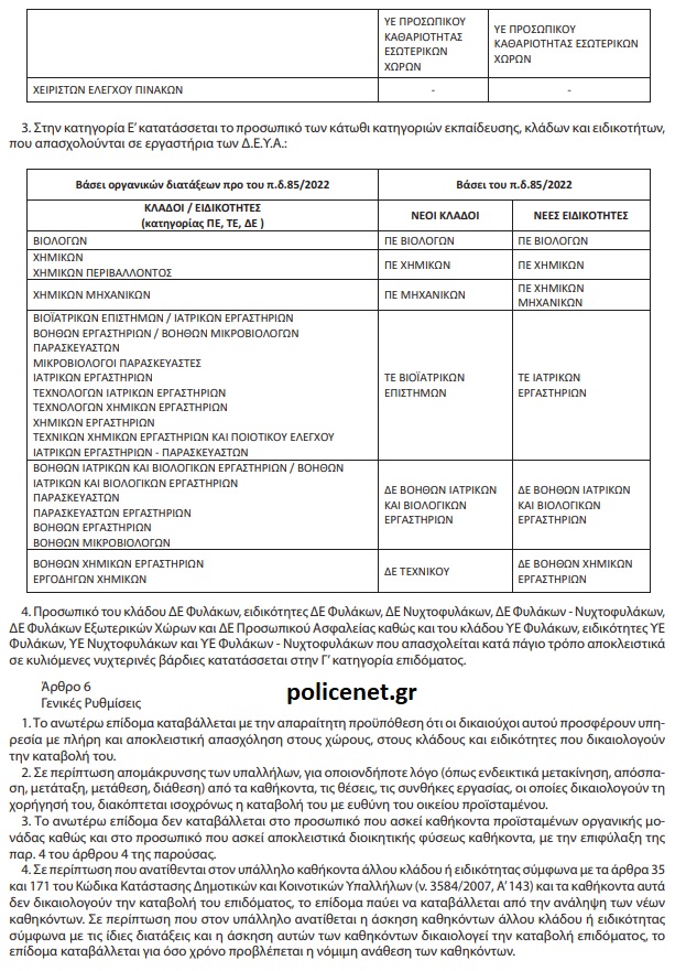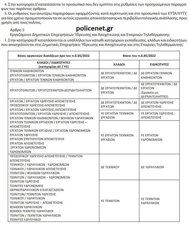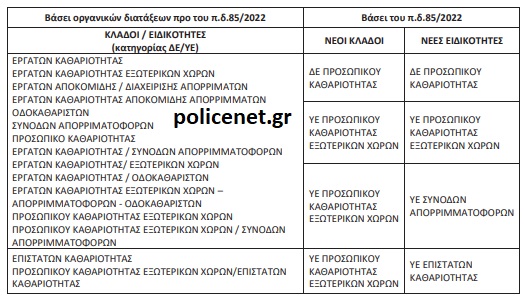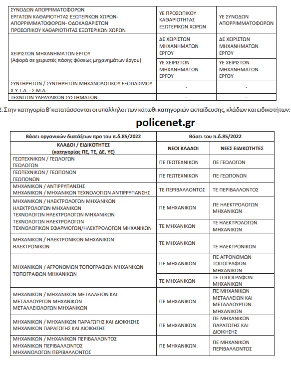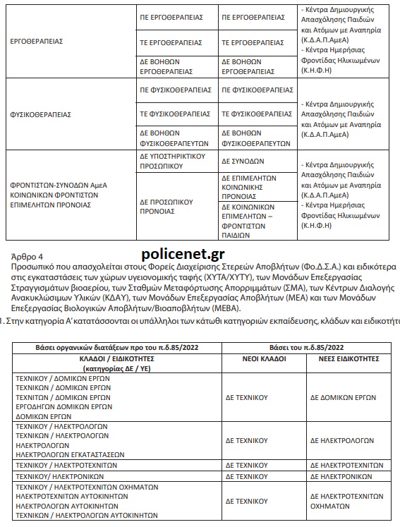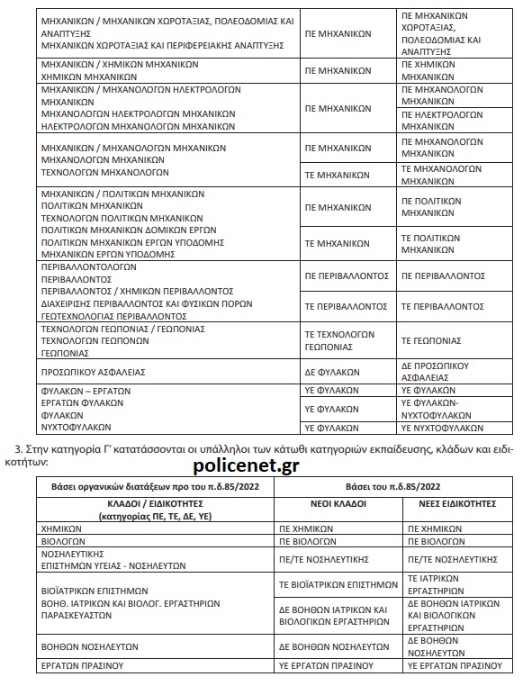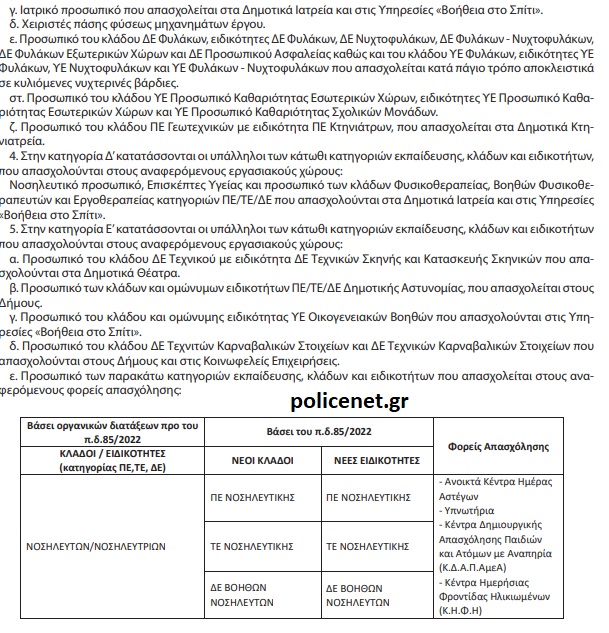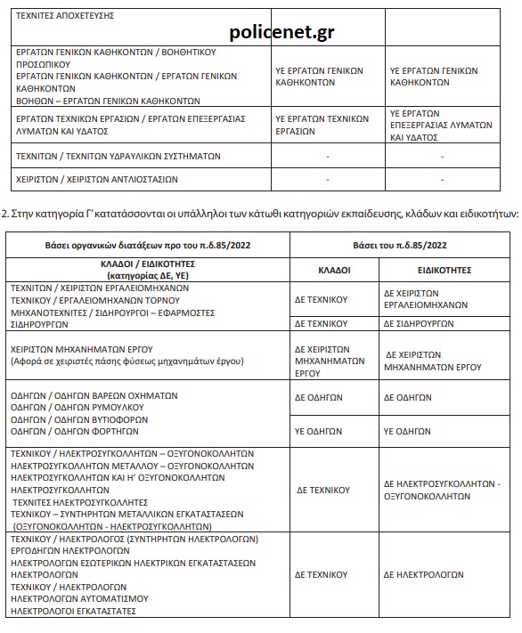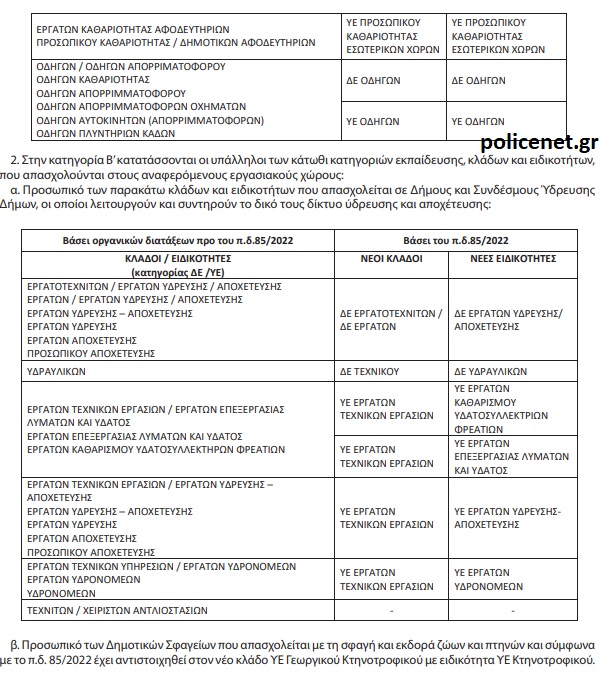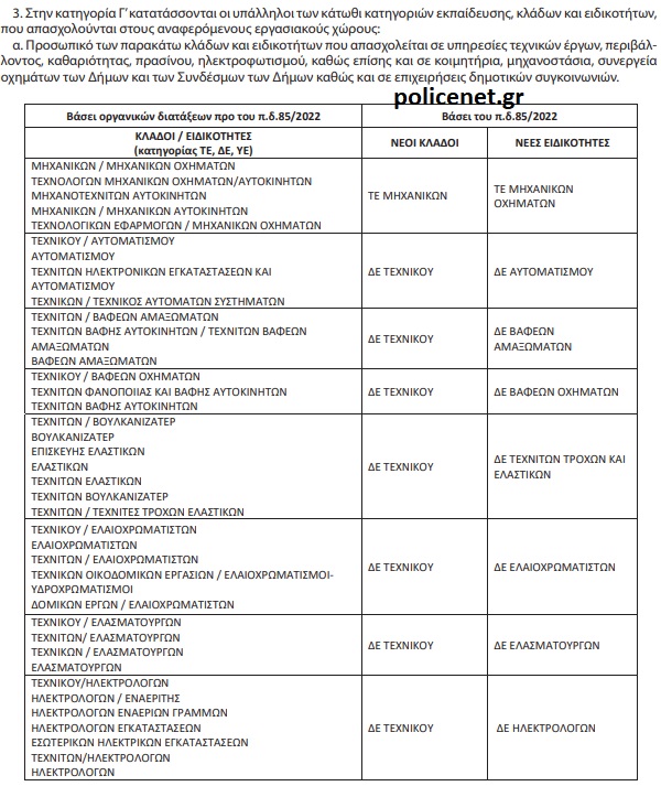 Το προσωπικό των ΟΤΑ Α’ Βαθμού και των νομικών προσώπων αυτών που προσδιορίζεται από το πεδίο εφαρμογής εκάστης ρύθμισης της παρούσας, κατατάσσεται στις κατηγορίες του άρθρου 2, ως εξής: