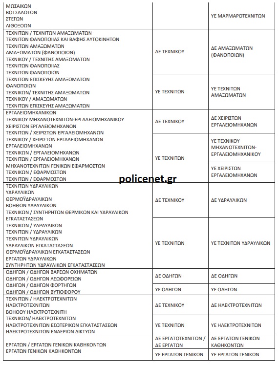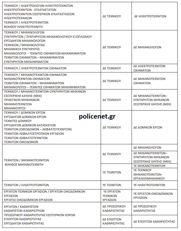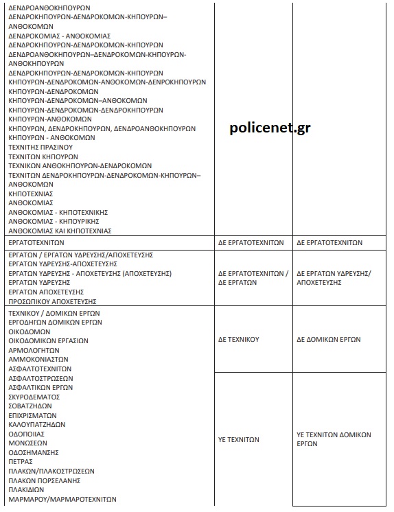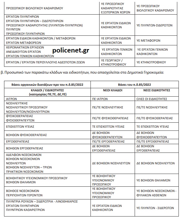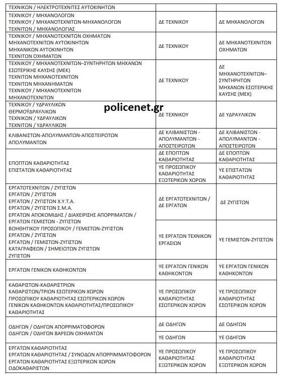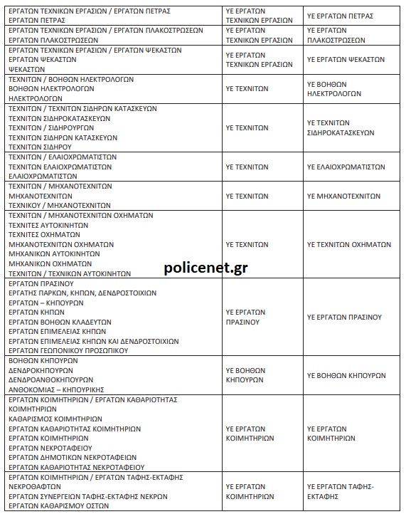 α. Προσωπικό των Δήμων, των παρακάτω κλάδων και ειδικοτήτων, που απασχολείται στη συγκομιδή και αποκομιδή, μεταφορά, διαλογή, επιστασία και καταστροφή απορριμμάτων. Στην παρούσα ρύθμιση δεν υπάγεται προσωπικό καθαριότητας εσωτερικών χώρων, με εξαίρεση τους εργαζόμενους στην καθαριότητα δημοτικών αφοδευτηρίων