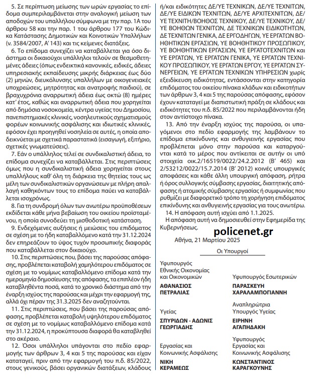Δημοσιεύτηκε στην Εφημερίδα της Κυβερνήσεως η Κοινή Υπουργική Απόφαση με τίτλο "Καθορισμός επιδόματος επικίνδυνης και ανθυγιεινής εργασίας του άρθρου 18 του ν. 4354/2015 (Α’ 176) των υπαλλήλων των Οργανισμών Τοπικής Αυτοδιοίκησης πρώτου βαθμού (Ο.Τ.Α. Α’ Βαθμού) και των νομικών προσώπων αυτών"