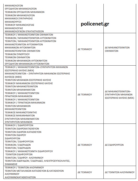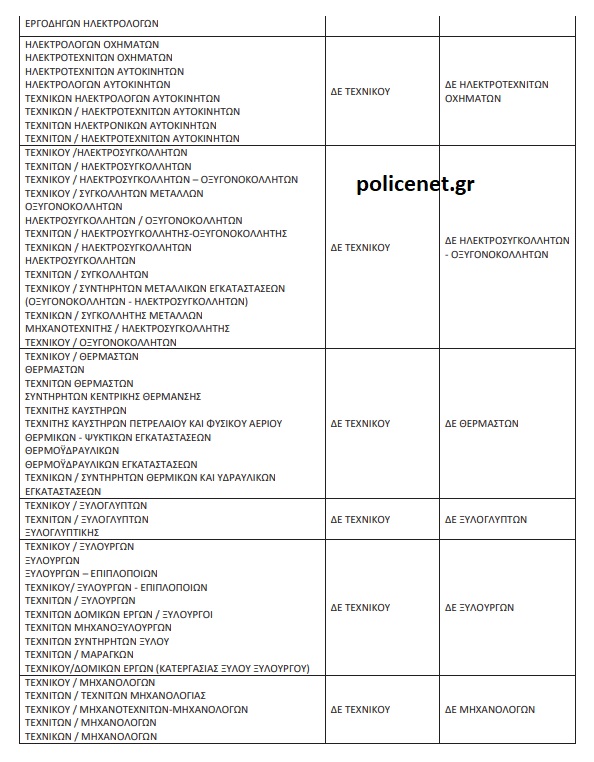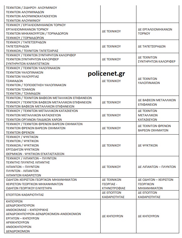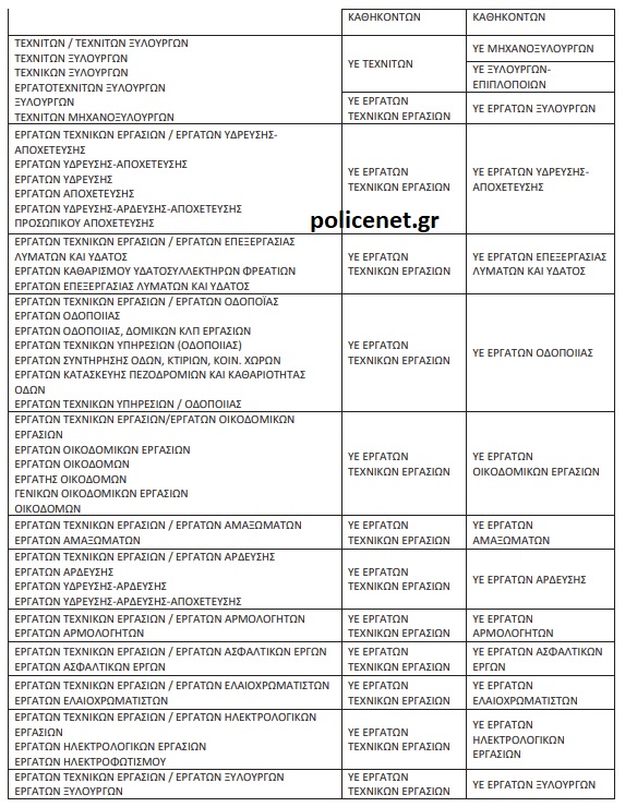 1. Στην κατηγορία Α’ κατατάσσονται οι υπάλληλοι των κάτωθι κατηγοριών εκπαίδευσης, κλάδων και ειδικοτήτων, που απασχολούνται στους αναφερόμενους εργασιακούς χώρους: