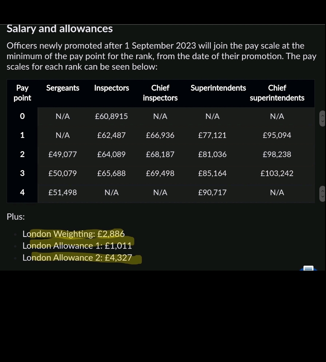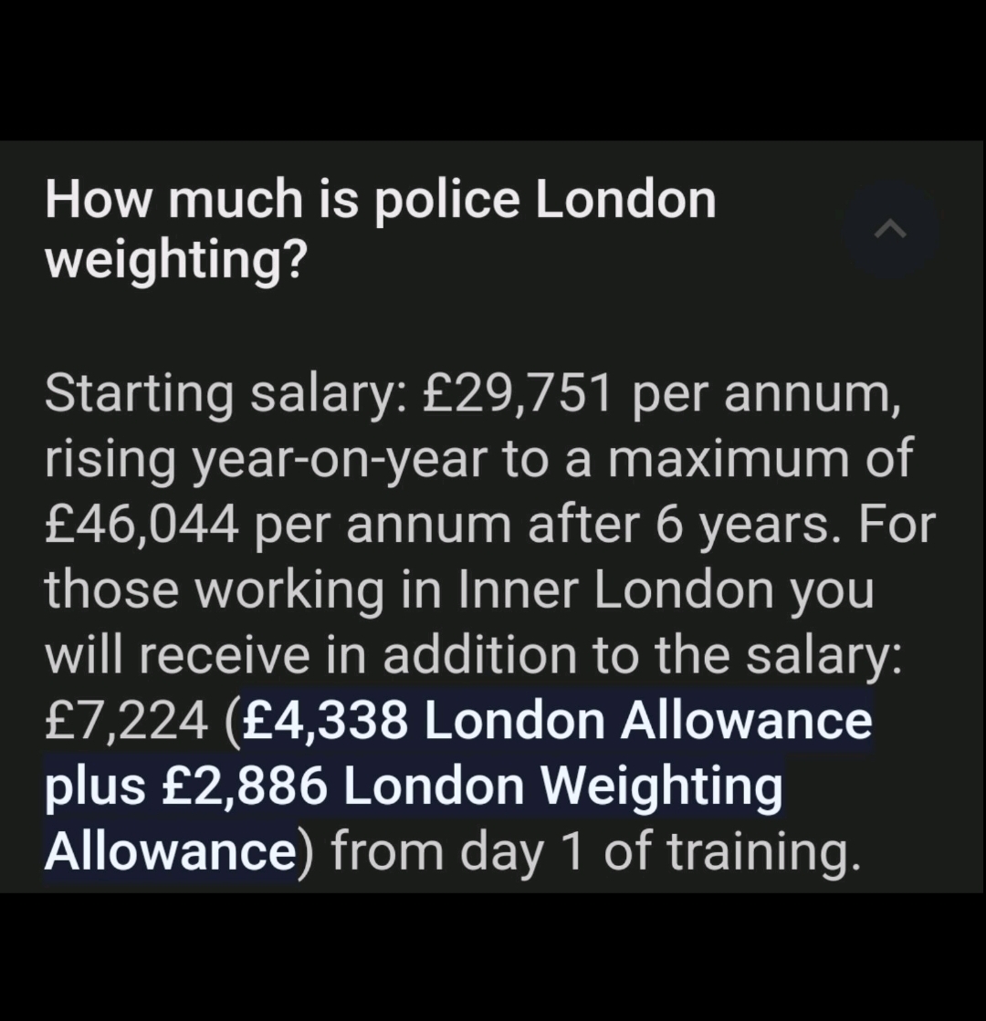 Παρατηρείστε στον πρώτο πίνακα την προσθήκη στο μισθό του νεοδιοριζόμενου αστυνομικού, η οποία αναφέρεται ως «Επίδομα Λονδίνου δηλ. πρωτεύουσας» (London Allowance και London Weighting).