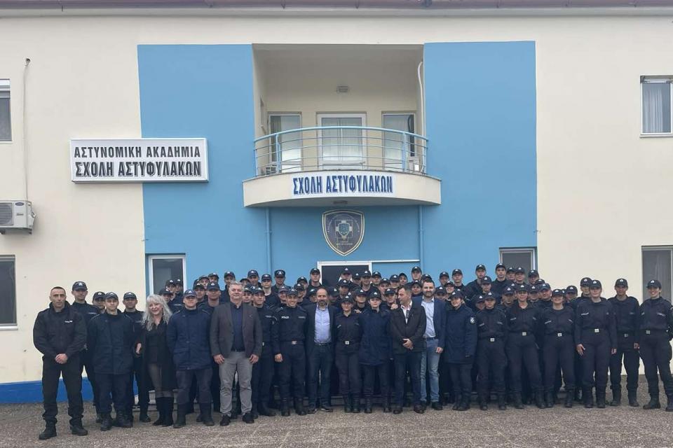 Απογευματινές ώρες της Τρίτης 04 Απριλίου 2023, μετά από πρόσκληση της Ένωσής μας που έκανε άμεσα αποδεκτή ο Πρόεδρος της Ομοσπονδίας μας κ. Γρηγόρης ΓΕΡΑΚΑΡΑΚΟΣ, Αντιπροσωπεία του Διοικητικού Συμβουλίου της Ομοσπονδίας μας αποτελούμενη από τον Πρόεδρο του Δ.Σ. της Π.Ο.ΑΣ.Υ. κ. Χρήστο ΜΑΥΡΑΓΑΝΗ, τον Αντιπρόεδρο του Δ.Σ. της Π.Ο.ΑΣ.Υ. κ. Σταύρο ΦΕΤΚΟ και τον Αναπληρωτή Ταμία κ. Θεόφιλο ΠΑΠΑΔΑΚΗ, μαζί με την Πρόεδρο της Ένωσής μας κ. ΤΖΑΤΖΑΝΑ Σταυρούλα και τον Α΄ Αντιπρόεδρό μας κ. ΚΑΤΡΑΝΙΔΗ Ευστάθιο, πραγματοποίησαν επίσκεψη στο Τ.Δ.Α. Κομοτηνής και συναντήθηκαν με τον Διοικητή του Τ.Δ.Α. Κομοτηνής Αστυνομικό Υποδιευθυντή κ. ΔΕΜΕΡΤΖΙΔΗ Πέτρο και τους Δόκιμους Αστυφύλακες που πραγματοποιούν την αστυνομική τους εκπαίδευση στη Σχολή μας.