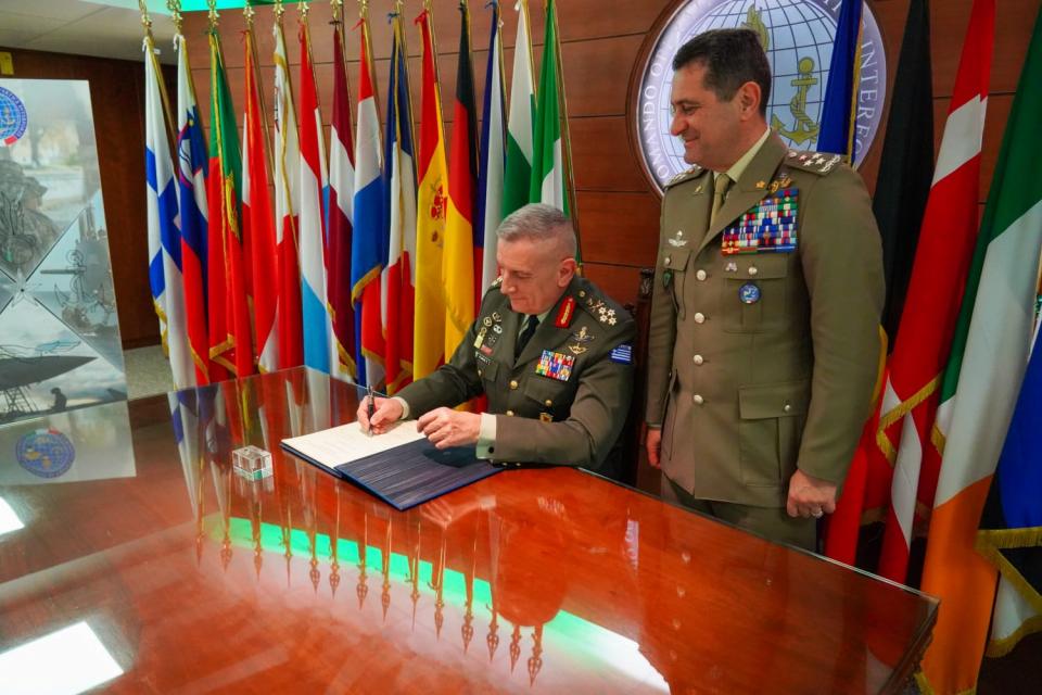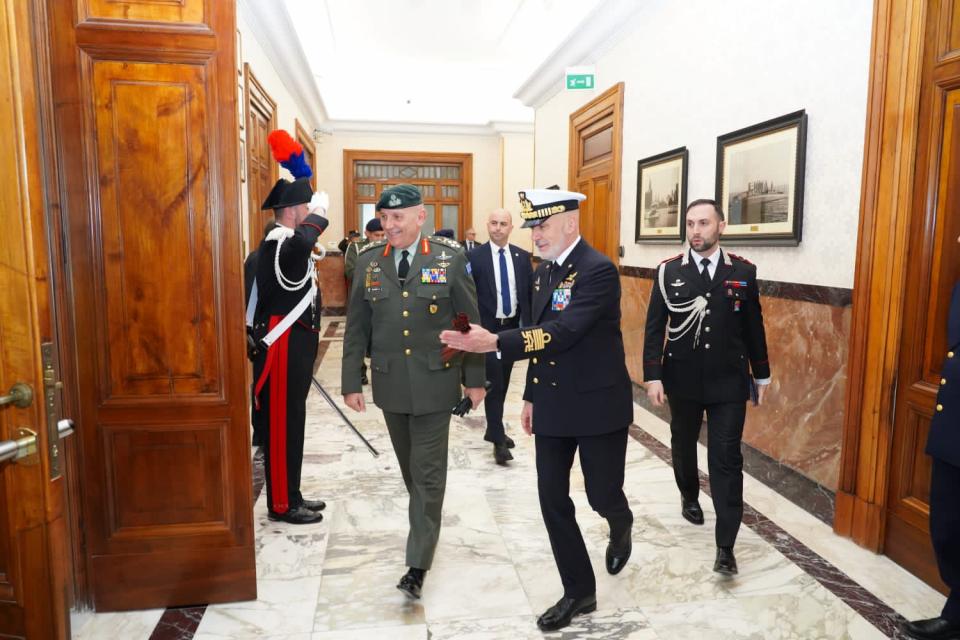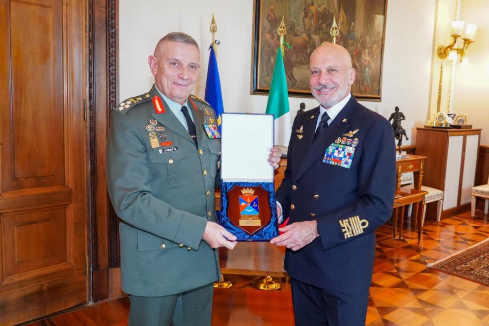 Στην συνέχεια, μετέβη στο Στρατηγείο Διακλαδικών Επιχειρήσεων (Joint Operations Headquarters – JOHQ) των Ιταλικών Ενόπλων Δυνάμεων και συναντήθηκε σε ιδιαίτερα εγκάρδιο κλίμα με τον Διοικητή Lieutenant General Francesco Paolo Figliuolo, με τον οποίο είχαν την ευκαιρία να συζητήσουν επιχειρησιακά θέματα κοινού ενδιαφέροντος, ενώ τόνισαν την αξία των συνεργασιών και των σχέσεων καλής γειτονίας, σύμφωνα με τους κανόνες του Διεθνούς Δικαίου και τις αποφάσεις των Διεθνών Οργανισμών.