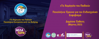 «Το Χαμόγελο του Παιδιού» στο πλαίσιο, της Πανελλαδικής Σχολικής Εκστρατείας Ευαισθητοποίησης του με τίτλο «Μίλα Τώρα», για το φαινόμενο της Ενδοσχολικής Βίας και του Εκφοβισμού, που έχει λάβει δραματικές διαστάσεις στη χώρα μας τα τελευταία χρόνια, και με αφορμή την Πανελλήνια Ημέρα κατά του Bullying πραγματοποίησε μια έρευνα προσπαθώντας να προσδιορίσει τον τρόπο που διαμορφώνεται το φαινόμενο του σχολικού εκφοβισμού στη χώρα μας λαμβάνοντας υπόψη την παιδική ευημερία.