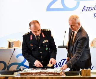 Ο Πρόεδρος της Ομοσπονδίας κ. Γρηγόρης ΓΕΡΑΚΑΡΑΚΟΣ, καλωσορίζοντας στη χειμωνιάτικη Αθήνα τους επίσημους προσκεκλημένους και τους συναδέλφους και συναδέλφισσες από όλες τις Πρωτοβάθμιες Ενώσεις, ζήτησε να τηρηθεί ενός λεπτού σιγή στη μνήμη των Ηρωικών πιλότων, του Σμηναγού Ευστάθιου Τσιτλακίδη και του υποσμηναγού Μάριου-Μιχαήλ Τουρούτσικα που έχασαν τη ζωή τους πριν από μερικές ημέρες, ενώ δεν παρέλειψε να αναφερθεί και στις δύσκολες ώρες που περνά ο γειτονικός μας λαός εξαιτίας των φονικών σεισμών, τονίζοντας την αποτελεσματικότητα των ελληνικών υπηρεσιών Πολιτικής Προστασίας, βασικός πυλώνας των οποίων αποτελεί και το αστυνομικό σώμα.