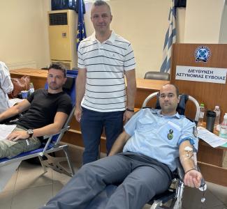 Πραγματοποιήθηκε σήμερα στην αίθουσα πολλαπλών χρήσεων της Δ/νσης Αστυνομίας Ευβοίας, με μεγάλη επιτυχία και για τρίτη συνεχή χρονιά, η αιμοδοσία της Ένωσης μας, συνεχίζοντας έτσι την αδιάλειπτη διοργάνωση εθελοντικών αιμοδοσιών.