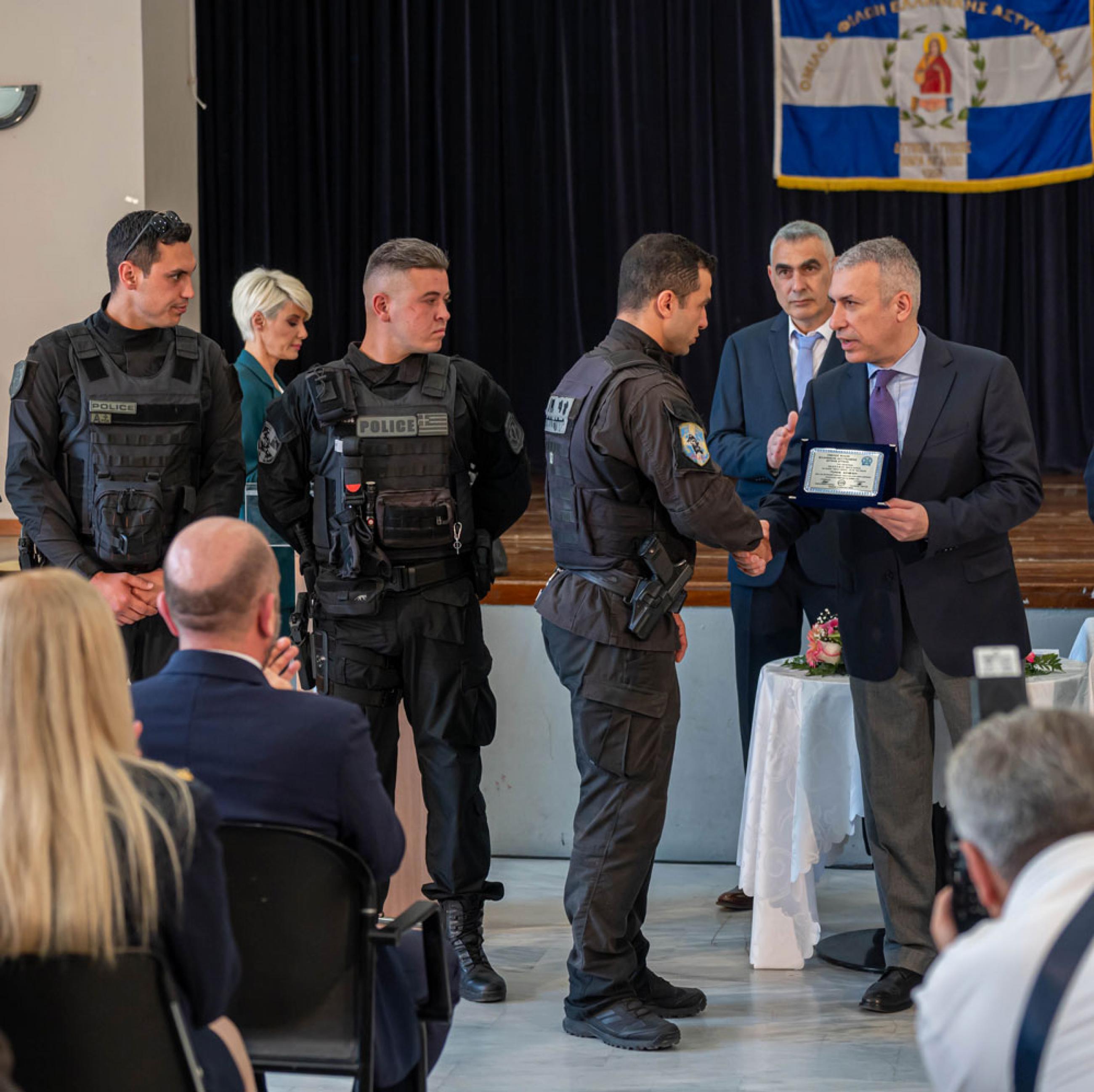 στ) Απονεμήθηκε τιμητική διάκριση στην Ο.Π.Κ.Ε. Δυτικής Αττικής η οποία πραγματοποιεί επικίνδυνες αποστολές και επιχειρήσεις που αποσκοπούν στην εξάρθρωση εγκληματικών ομάδων με αξιόλογες επιτυχίες, συμβάλλοντας στην εμπέδωση κλίματος ασφάλειας στους πολίτες.