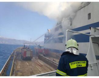 Αναζωπυρώθηκε η φωτιά στο εσωτερικό του επιβατηγού οχηματαγωγού πλοίου Euroferry Olympia, στο λιμάνι του Αστακού, μετά το άνοιγμα του καταπέλτη.