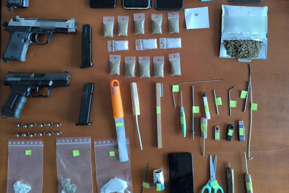 Παράλληλα, σε συνεργασία με τη Διεύθυνση του Σωφρονιστικού Καταστήματος, διενεργήθηκε στους έγκλειστους εμπλεκόμενους στην υπόθεση έκτακτος έλεγχος κατά τον οποίο βρέθηκαν –μεταξύ άλλων- και κατασχέθηκαν: