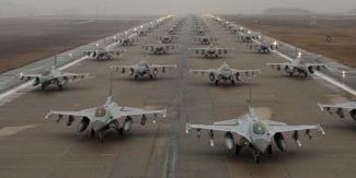 24 μαχητικά αεροσκάφη F-22, πλήρως οπλισμένα, εκτελούν ένα “Elephant Walk” στην αεροπορική βάση Elmendorf-Richardson, επιδεικνύοντας την ετοιμότητα της 3ης Πτέρυγας στην άμεση διεξαγωγή επιχειρήσεων. Ένα θέαμα που μένει για πάντα στην μνήμη όσων το παρακολουθούν.