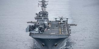 Το αεροσκάφος F-35B πραγματοποίησε πτήση από πλοίο USS WASP την ώρα που αυτό επιχειρούσε στη θάλασσα των Κοραλλιών.