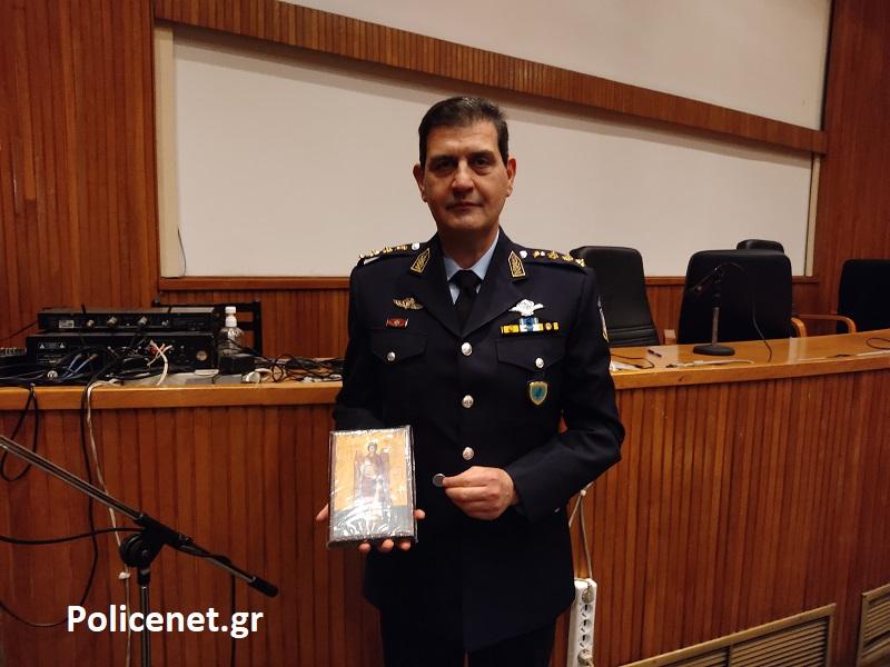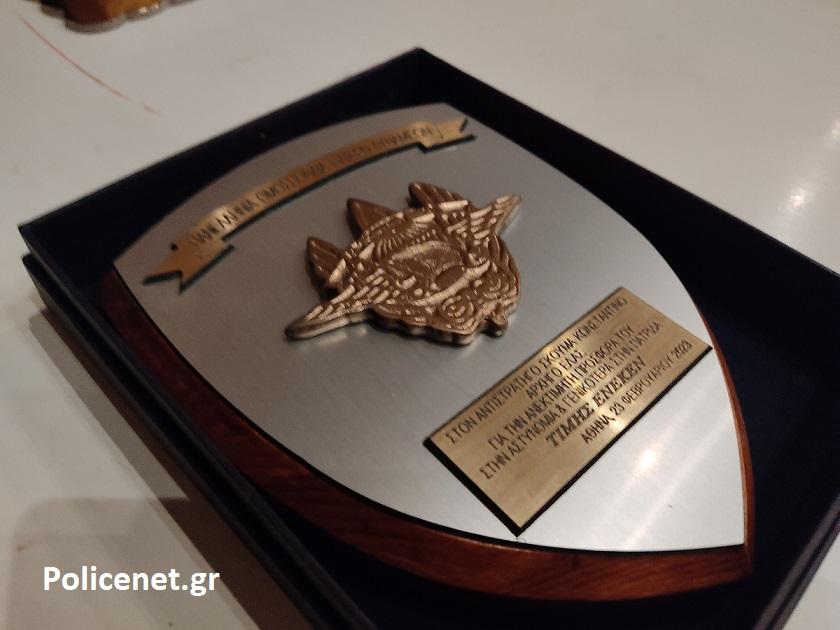 Επιπροσθέτως, ο κ. Μαστροθανάσης απένειμε τιμής ένεκεν πλακέτα στον Αρχηγό της ΕΛ.ΑΣ., κ. ΣΚΟΥΜΑΣ Κωνσταντίνο για την ανεκτίμητη προσφορά του στο Σώμα και την Πατρίδα, την οποία παρέλαβε ο αντιπρόσωπός του Υποστράτηγος κ. Μπάλλας.