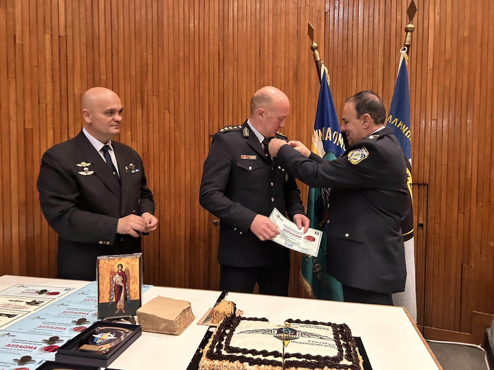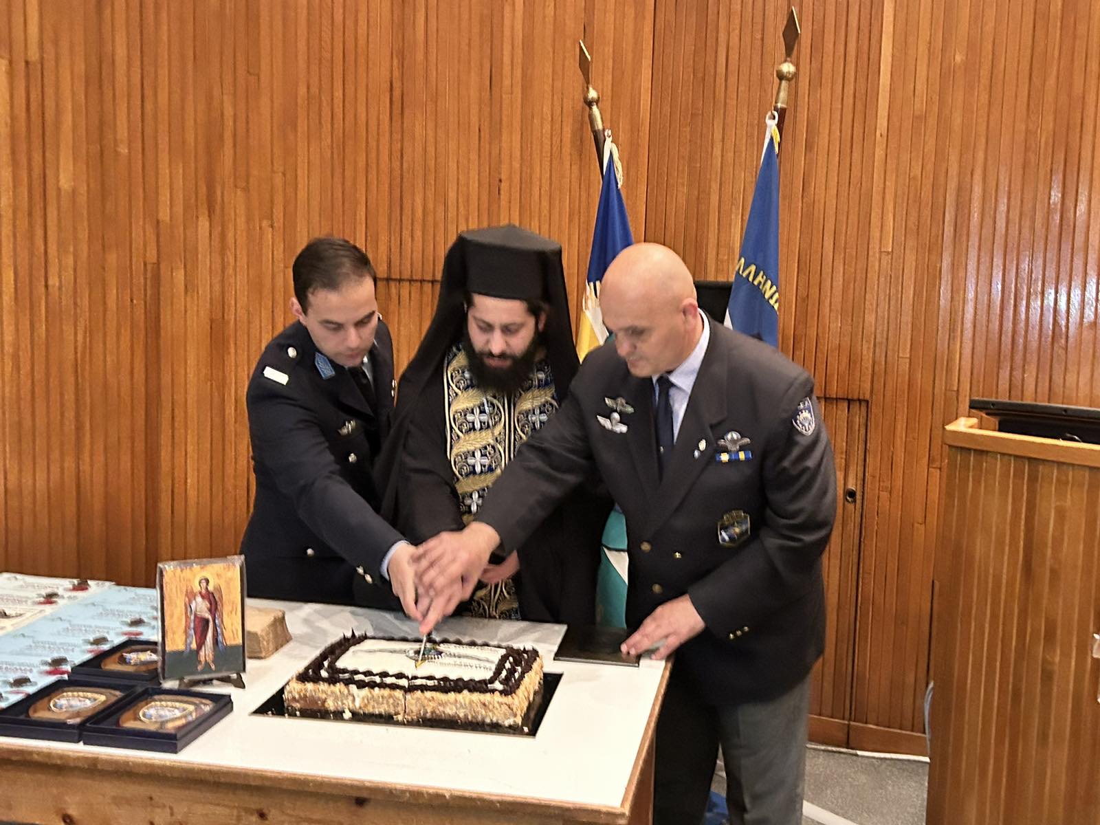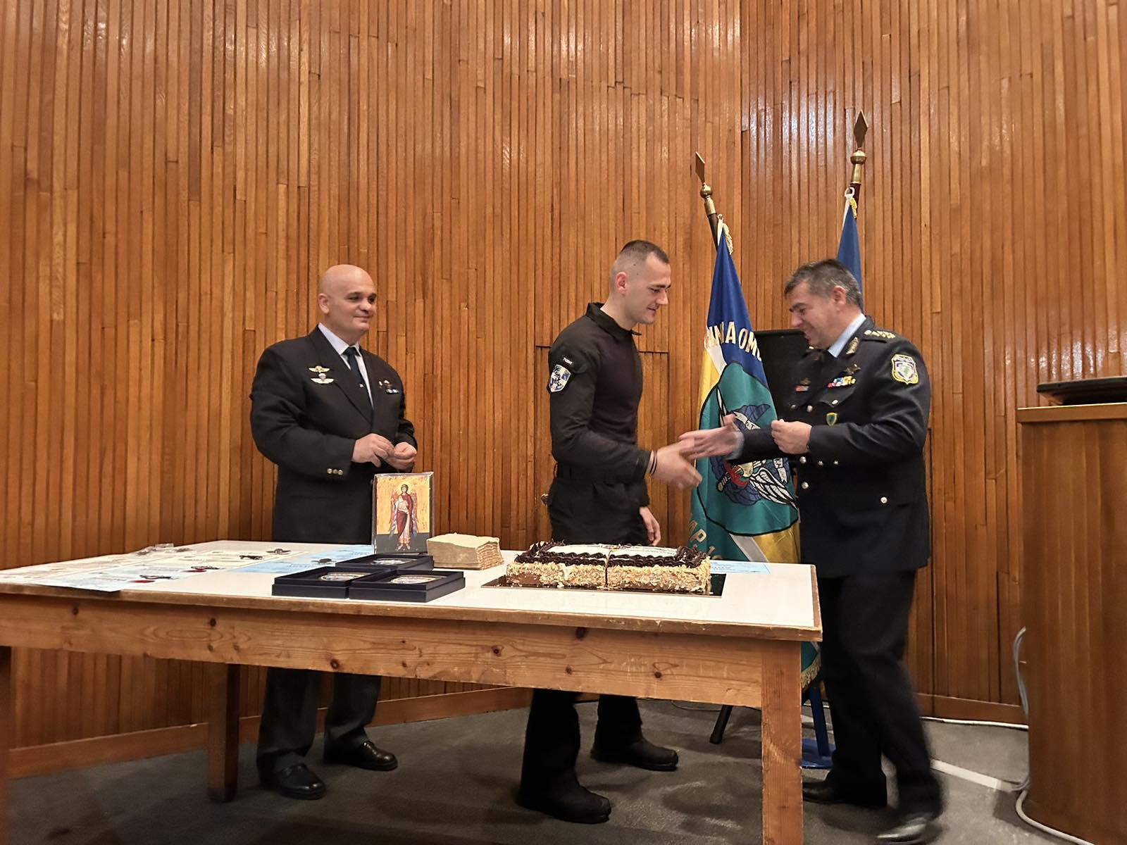 Για τρίτη χρονιά η Ομάδα Αλεξιπτωτιστών-Αστυνομικών της Λέσχης Ελλήνων Καταδρομέων Αλεξιπτωτιστών Πιερίας (Λ.Ε.Κ.ΑΛ.), έκοψε την πρωτοχρονιάτικη βασιλόπιτα χθες (27/2), στο Αμφιθέατρο της Γενικής Αστυνομικής Διεύθυνσης Αττικής.