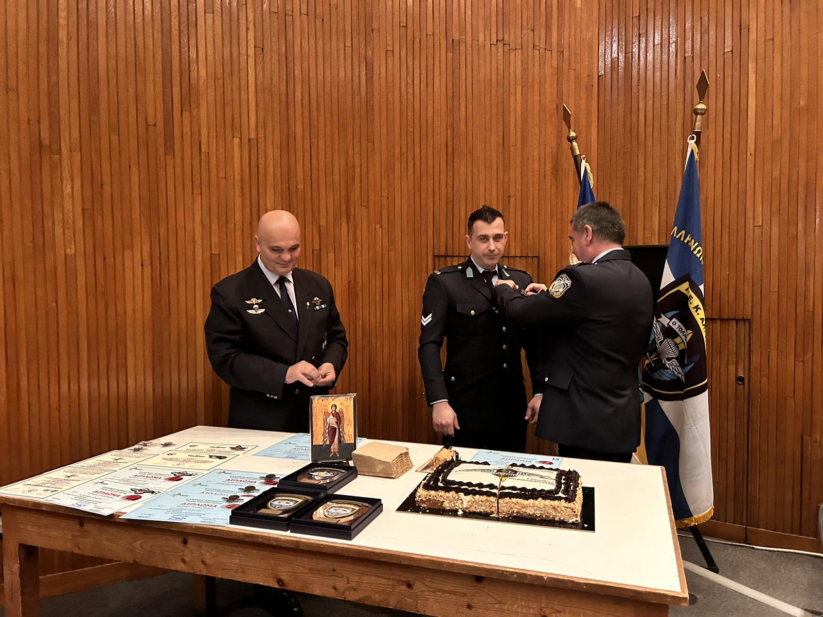 Η Λέσχη Ελλήνων Καταδρομέων και Αλεξιπτωτιστών Πιερίας απένειμε δίπλωμα αλεξιπτωτιστή στατικού ιμάντα και πτέρυγες σε έξι (6) αστυνομικούς-αλεξιπτωτιστές μάχιμων υπηρεσιών από τον βαθμό του Ειδικού Φρουρού μέχρι του Αστυνομικού Διευθυντή, που ολοκλήρωσαν ευδοκίμως την θεωρητική και πρακτική εκπαίδευση κατά το έτος 2023.