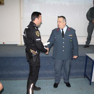 Απονεμήθηκαν τιμητικά διπλώματα, από τον Γενικό Αστυνομικό Διευθυντή Θεσσαλονίκης Υποστράτηγο Χρήστο Μπουλούμπαση και τον Διευθυντή της Διεύθυνσης Άμεσης Θεσσαλονίκης Α/Δ Κωνσταντίνο Αθανασάκο, σε 15 αστυνομικούς, που συμμετείχαν σε εκπαίδευση με θέμα "Παροχή Α' Βοηθειών στο Πεδίο της Μάχης".