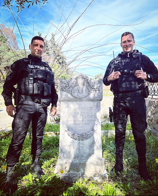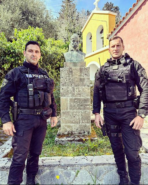 Αστυνομικοί της Ομάδας ΔΙ.ΑΣ. Ζακύνθου στο μνημείο που βρίσκεται στην εκκλησία του Αγίου Γεωργίου του Λατίνου, όπου ο Θεόδωρος Κολοκοτρώνης μυήθηκε στη Φιλική Εταιρεία.