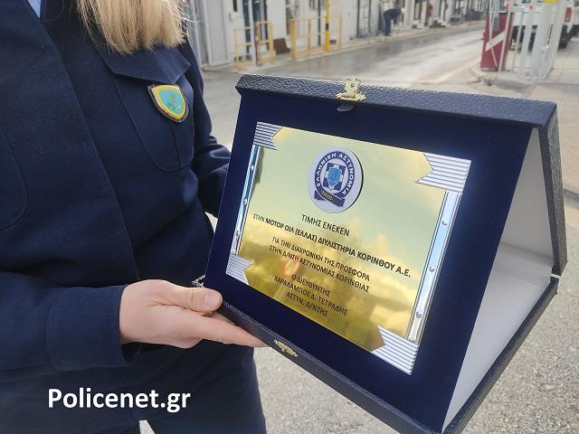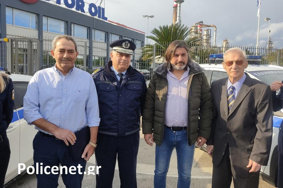 "Σήμερα η Ελληνική Αστυνομία και συγκεκριμένα η Αστυνομική Διεύθυνση Κορινθίας παραλαμβάνει δύο περιπολικά και δέκα αλεξίσφαιρα γιλέκα προσφορά του Ομίλου Motor Oil Hellas. Ευχαριστώ από καρδιάς τον κ. Κανελλόπουλο και τον κ. Στειακάκη για την υποστήριξή τους. Η πράξη αυτή δείχνει έμπρακτα την εμπιστοσύνη και την αγάπη που υπάρχει προς το Σώμα. Ευχόμενος υγεία, τους ευχαριστώ και τους απονέμω μια αναμνηστική πλακέτα!"