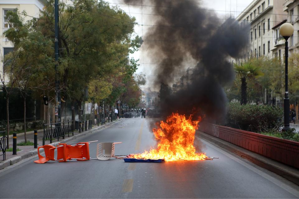 Ένταση επικράτησε το μεσημέρι έξω από το Οικονομικό Πανεπιστήμιο Αθηνών (πρώην ΑΣΟΕΕ), όταν ομάδα ατόμων έστησε ξαφνικά οδοφράγματα στην οδό Πατησίων και πέταξε διάφορα αντικείμενα κατά αστυνομικών δυνάμεων, αλλά και έξω από τη Νομική Σχολή.