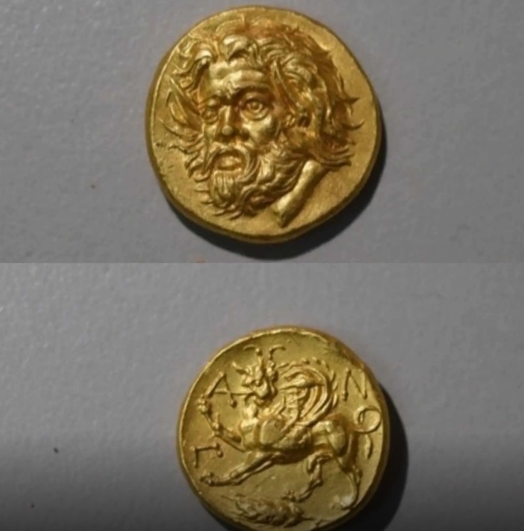 Το χρυσό νόμισμα χαρακτηρίστηκε, κατά την εκτίμηση του από αρχαιολόγο του Νομισματικού Μουσείου Αθηνών, ως ιδιαίτερα σπάνιο διότι ο εικονιζόμενος «Πάνας» απεικονίζεται στην εμπρόσθια μορφή του και προέρχεται από την αρχαία πόλη του Παντικαπαίου, ελληνική αποικία της Ταυρικής Χερσονήσου της Μαύρης Θάλασσας (σημερινή Κριμαία).