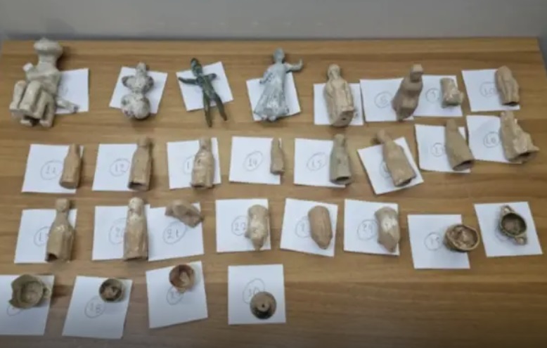 Στο πλαίσιο της επιχειρησιακής δράσης εντοπίστηκαν από κλιμάκιο αστυνομικών της ανωτέρω υπηρεσίας στον ανωτέρω τόπο πλήθος αρχαίων αντικειμένων, τα οποία περιλαμβάνονται στην προστασία της πολιτιστικής κληρονομιάς και συνιστούν αντικείμενα μεγάλης ιστορικής και αρχαιολογικής αξίας.