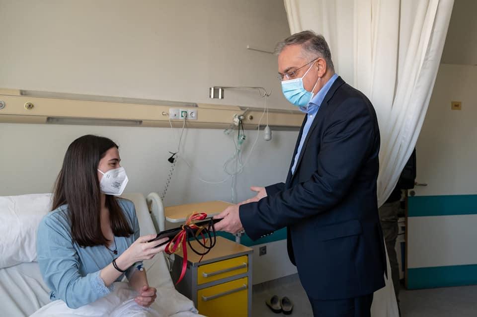 Συνοδευόμενοι από τον Διευθυντή της Διεύθυνσης Υγειονομικού, Υποστράτηγο (ΥΓ) Αθανάσιο Μπαδέκα, ο Υπουργός Προστασίας του Πολίτη και ο Αρχηγός της Ελληνικής Αστυνομίας προσέφεραν στους νοσηλευόμενους αστυνομικούς συμβολικά δώρα και ευχήθηκαν ταχεία ανάρρωση, ενώ ενημερώθηκαν από τους θεράποντες ιατρούς για την κατάσταση της υγείας τους.