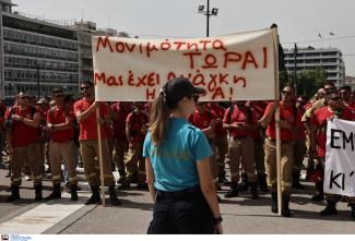 Συλλαλητήριο πραγματοποίησαν στο κέντρο της Αθήνας οι εποχικοί πυροσβέστες ζητώντας την άμεση απορρόφησή τους χωρίς ηλικιακά κριτήρια. Οι εποχικοί/ες πυροσβέστες και πυροσβέστριες, φορώντας τις στολές τους και με κεντρικά συνθήματα «Ήρθε η ώρα να βγάλουμε τα μπεζ, οι καταστροφές δεν είναι εποχικές» και «Στο πλάι σου πολίτη όταν με χρειαστείς, ενίσχυση του Σώματος της Πυροσβεστικής», συγκεντρώθηκαν στην πλατεία Συντάγματος ενώ κατευθύνθηκαν και στο Υπουργείο Οικονομικών παραδίδοντας ψήφισμα με τα αιτήματά τους.