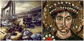 Οι «Πράσινοι και οι Βένετοι», ωθούν το λαό σε στάση κατά του αυτοκράτορα Ιουστινιανού.