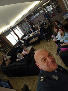 Συγκεκριμένα, επίσκεψη πραγματοποιήθηκε στην Διευθύντρια της Διεύθυνσης Εκπαίδευσης και Ανθρώπινων Πόρων Ταξίαρχο κα Σοφία ΛΑΜΠΡΟΠΟΥΛΟΥ και στις συναδέλφους της Διεύθυνσης. Στη συνέχεια, στη Διοικητή της Υποδιεύθυνσης Τροχαίας Αθηνών Α/Υ΄κα ΦΑΛΚΟΥ Πηνελόπη και στις μητέρες που βρίσκονταν εκεί. Κατόπιν, στις συναδέλφους του ΤΕΑΠΑΣΑ και αργότερα της ΓΑΔΑ, όπου εκεί μας δέχτηκε στο γραφείο του ο Γενικός Αστυνομικός Διευθυντής Αττικής Υποστράτηγος κ. Ανδρέας ΒΑΣΙΛΟΠΟΥΛΟΣ με την παρουσία των Α΄ Βοηθού ΓΑΔΑ Υποστράτηγου κ. Γεώργιου ΨΩΜΑ και του Διευθυντή Αστυνομίας Αθηνών Ταξίαρχου κ. Κωνσταντίνου ΜΑΡΚΟΠΟΥΛΟΥ. Θερμή υποδοχή μας επιφύλαξε και ο Διοικητής Φρουράς του Αστυνομικού Μεγάρου Υ/Α΄κ. ΓΟΥΛΙΑΜΗΣ Δημήτριος.