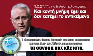 Με έκπληξη και αγανάκτηση διαβάσαμε την χθεσινή τοποθέτηση του τομεάρχη Προστασίας του Πολίτη της αξιωματικής αντιπολίτευσης κ. Ιωάννη Ραγκούση, για τις προσλήψεις συνοριακών φυλάκων και τους άστοχους – άσχετους χαρακτηρισμούς για το θεσμό του συνοριακού φύλακα.