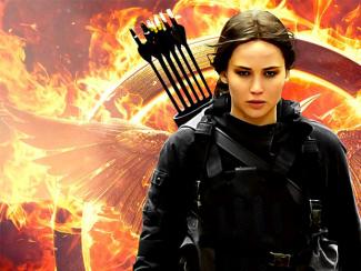 Ένα βιβλίο, μια ταινία'. 'Ένα βιβλίο, μια ταινία'. Ελατέ, πάμε όλοι μαζί. 'Ένα βιβλίο, μια ταινία'. Βγάλτε τις ντουντούκες. 'Ένα βιβλίο, μια ταινία'. Και εσείς κορίτσια τα πανό 'Ένα βιβλίο, μια ταινία'. Μην με κοιτάτε έτσι. Δεν είμαι τρελός. Τα στούντιο είναι πιο άπληστα και από μεγαλο-χρηματιστή της Wall Street που στις φλέβες του τρέχει υγρό δολάριο αντί για αίμα. Και, στο τέλος, την πληρώνουν η Katniss και οι φίλες της.