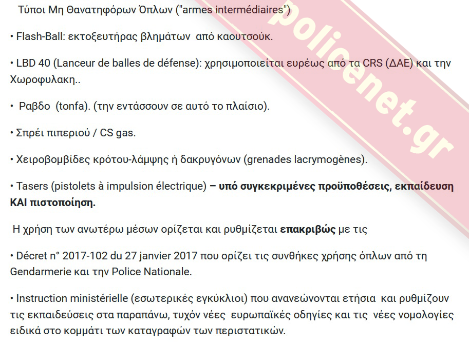 Η Ελληνική Αστυνομία , καλείται να εξετάσει σοβαρά την υιοθέτηση ενός σαφούς νομικού και επιχειρησιακού πλαισίου για τα μη θανατηφόρα όπλα. Η θέσπιση κανόνων για τη χρήση αυτών των μέσων θα συμβάλει στην αποτροπή καταχρήσεων που πάντα είναι ο μεγάλος φόβος της Ηγεσίας όταν ανοίγει αυτή η συζήτηση και στην ενίσχυση της προστασίας του προσωπικού.. Η πρόκληση είναι πλέον επιτελική και είναι ευκαιρία το etat-major κατά το Γαλλικό μοντέλο που υιοθετήθηκε στην πρόσφατη αναδιοργάνωση να δείξει την αξία του.