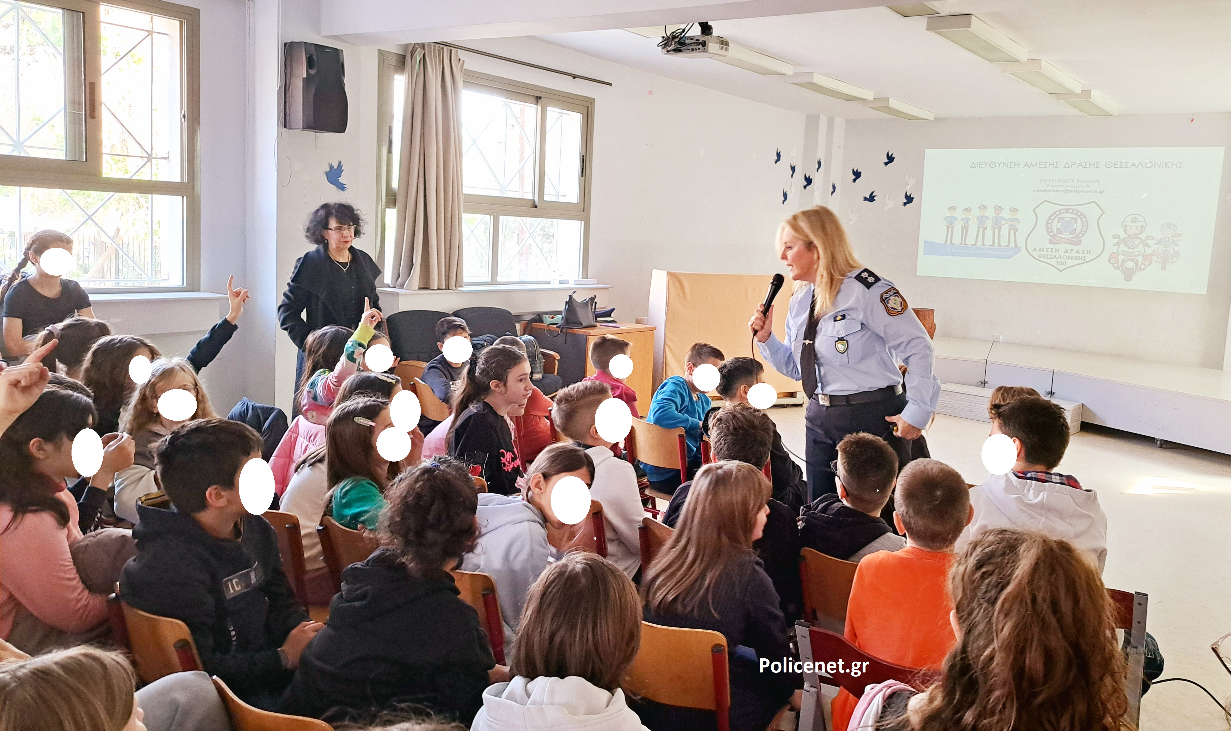Λίγο πριν την έναρξη των Πασχαλινών διακοπών των σχολικών μονάδων, οι μαθητές της Ε' και της ΣΤ' τάξης του 17ου Δημοτικού Καλαμαριάς ενημερώθηκαν για βασικούς κανόνες που αφορούν την ασφάλειά τους, για το επάγγελμα του αστυνομικού αλλά και για τους τρόπους με τους οποίους μπορούν να επικοινωνήσουν αποτελεσματικά με το Κέντρο Επιχειρήσεων της Άμεσης Δράσης Θεσσαλονίκης της Ελληνικής Αστυνομίας.