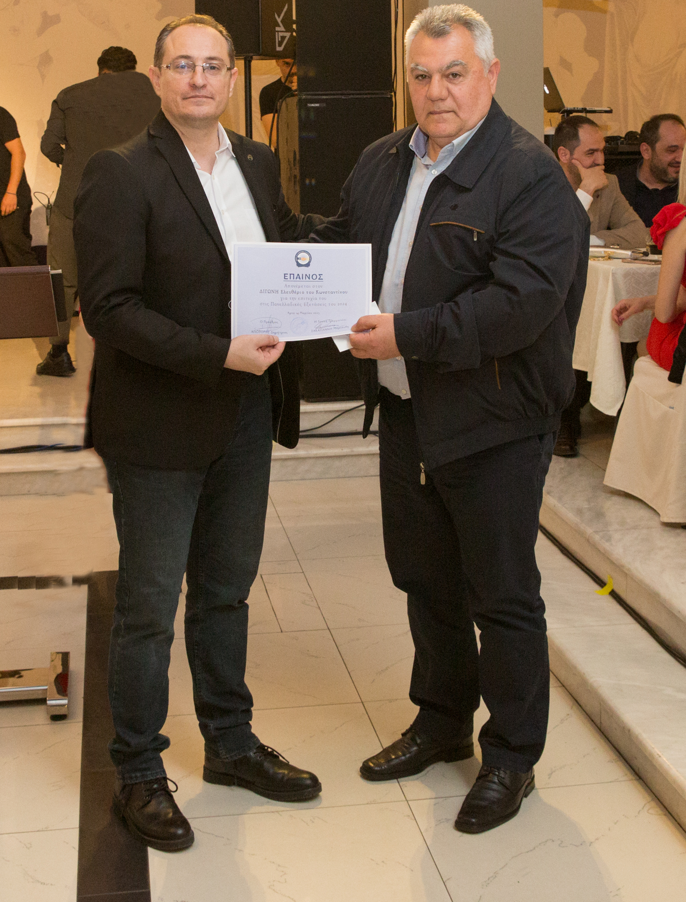Από τον Νομικό Σύμβουλο της Ένωσής μας, Δικηγόρο κ. Δημήτριο Λαμπράκη αλλά και για δεύτερη φορά φέτος και από την Ένωσή μας, βραβεύτηκε ο Ελευθέριος Διγώνης, υιός του Αρχιφύλακα ΔΙΓΩΝΗ Κωνσταντίνου ως το τέκνο αστυνομικού που πέτυχε τη μεγαλύτερη βαθμολογία στις Πανελλαδικές Εξετάσεις 2024, ο οποίος πέτυχε την εισαγωγή του στην Σχολή Δοκίμων Σημαιοφόρων Λιμενικού Σώματος - Ελληνικής Ακτοφυλακής.