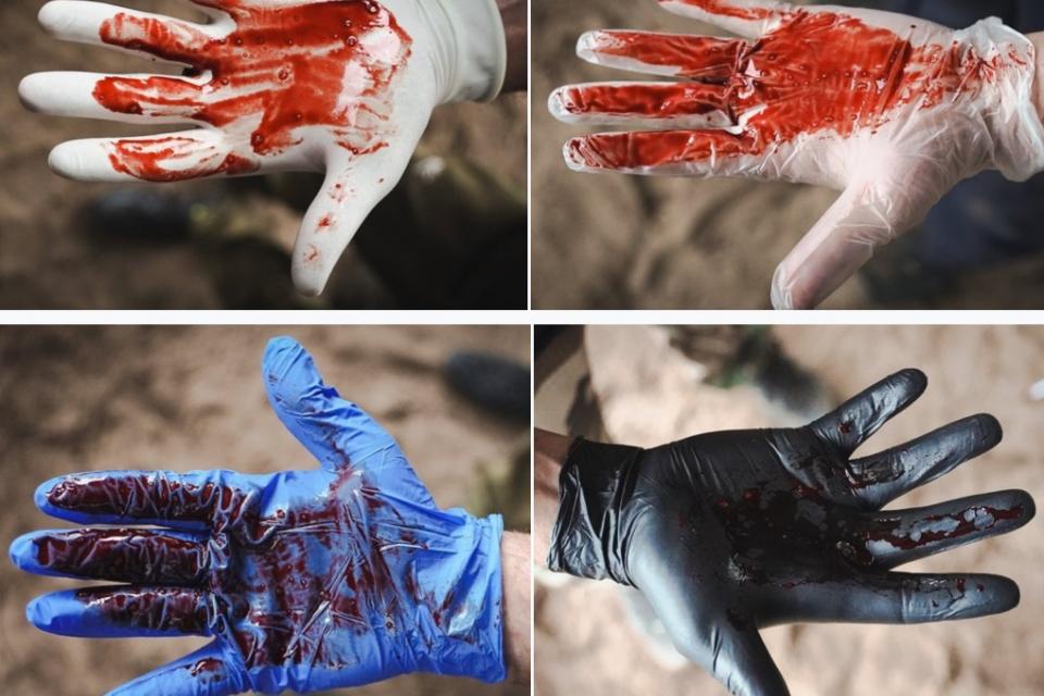 Το ποιό είναι το καταλληλότερο χρώμα γαντιών για χρήση σε τραύματα, είναι ένα θέμα που συζητείται έντονα για πάρα πολλά χρόνια, με εκατέρωθεν επιχειρήματα, τόσο για τα ανοιχτόχρωμα, όσο και για τα σκουρόχρωμα γάντια. Ο χρήστης του instagram με το όνομα “doc_chimaira” έχει κάνει μια ενδιαφέρουσα ανάρτηση, βασισμένη σε μια δοκιμή πεδίου, συνοδευόμενη και από σχετικές φωτογραφίες. Κατά την εν λόγω δοκιμή, ελήφθη πραγματικό ανθρώπινο αίμα από έναν εθελοντή -σε θερμοκρασία σώματος- ώστε η συνοχή του υγρού και οι παράγοντες πήξης να διατηρηθούν όσο το δυνατόν άθικτοι και να προσομοιάζουν σχεδόν απόλυτα με το αίμα του τραυματία (συναδέλφου, δράστη ή αθώου πολίτη) που θα συναντήσει ο αστυνομικός operator στο πεδίο. Στη δοκιμή χρησιμοποιήθηκαν τα τέσσερα πιο κοινά χρώματα γαντιών που μπορεί να βρει κάποιος στην αγορά, ήτοι λευκά, διάφανα, μπλε-μωβ και μαύρα, ενώ η σύγκριση έλαβε χώρα σε συνθήκες καλού, χαμηλού και καθόλου φωτισμού αντίστοιχα.