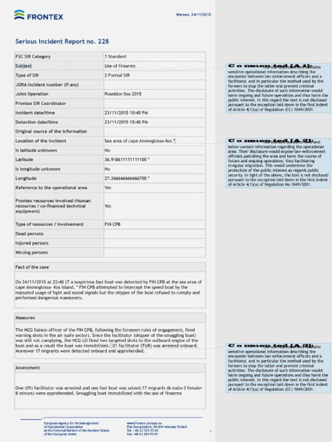 Σύμφωνα με όσα αναφέρει το ρεπορτάζ, το ελληνικό λιμενικό άνοιξε πυρ κατά σκαφών με άοπλους πρόσφυγες, γιατί έκαναν το έγκλημα να εισέλθουν παράνομα στα χωρικά ύδατα και να ο δουλέμπορος-διακινητής αρνήθηκε να υπακούσει στις εντολές τους και να σταματήσει. Ετσι αναφέρεται τουλάχιστον στο διαβαθμισμένο έγγραφο που δημοσιεύει η ιστοσελίδα.