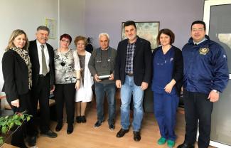 Αντιπροσωπεία του Δικτύου Κοινωνικής Αλληλεγγύης του Δήμου Δράμας, αποτελούμενη από τον Πρόεδρο της I.P.A. Δράμας κ. ΣΚΑΡΛΙΟ Μηνά, τη Γραμματέα του Ιατρικού Συλλόγου Δράμας κα. Όλγα Βασιλείου, τον εκπρόσωπο της Οικολογικής Κίνησης Δράμας κ. Μελισσινό Στέλιο και την υπεύθυνη της Κοινωνικής Υπηρεσίας του Δήμου Δράμας κα. ΔΑΪΝΑ Χρύσα, επισκέφθηκαν για μια ακόμη φορά το Γενικό Νοσοκομείο Δράμας, προκειμένου να παραδώσουν ένα σετ οφθαλμοσκόπιο και ωτοσκόπιο, για την κάλυψη των αναγκών της Παιδιατρικής Κλινικής.