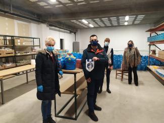 Εκεί μας υποδέχθηκαν η Πρόεδρος του συλλόγου κα. Τάτση Μαρία και η Αντιπρόεδρος κα. Κομήτσα Ανδριάνα, όπου μας ενημέρωσαν για τις δράσεις αυτού και την χορήγηση τροφίμων σε πεντακόσιες οικογένειες.