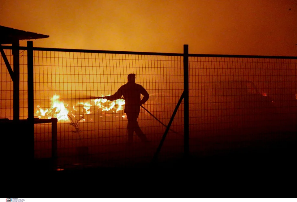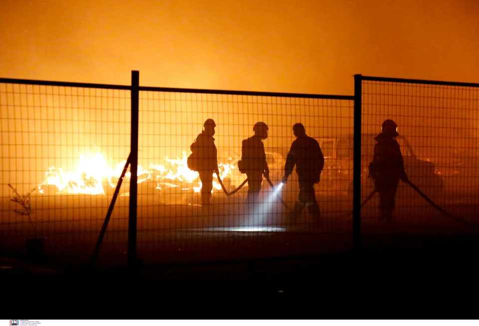 Νωρίτερα τη νύχτα, ο αντιδήμαρχος Μιχάλης Βρεττός είπε ότι οι φλόγες μπήκαν μέσα σε εργοστάσια και αποθήκες.