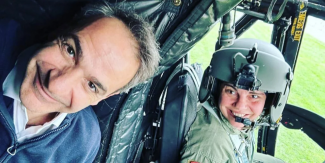 Με μια selfie μέσα από το ελικόπτερο εν ώρα της πτήσης προς τον Έβρο, ο πρωθυπουργός Κυριάκος Μητσοτάκης παρουσίασε την πρώτη γυναίκα κυβερνήτη σε ειδικό μέσο της Αεροπορίας Στρατού, Λοχαγό, Παναγιώτα Τεργιαζοπούλου.