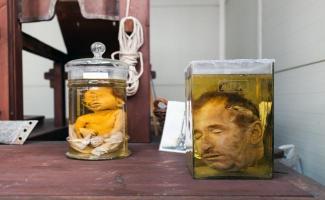 Πολλά κρανία είναι παραμορφωμένα. Έκοβαν τα κεφάλια τους και τα έστελναν στο εργαστήριο της Ιατροδικαστικής για ταυτοποίηση, για να αποδείξουν ότι πράγματι τους σκότωσαν. Τα έβαζαν μέσα σε τενεκέδες με πετρέλαιο ή χοντρό αλάτι – έτσι λένε οι μαρτυρίες. Ο ιατροδικαστής Κωνσταντέλος τα έπαιρνε, τα καθάριζε, τα έβαζε μέσα σε φορμόλη, αφαιρούσε τον εγκέφαλο και τα γέμιζε με άχυρο. Έχει κάνει εξαιρετική δουλειά, γι' αυτό και έχουν διατηρηθεί 100 χρόνια μετά. Έχουμε κεφάλια ληστών, όπως ο Μπαμπάνης και ο Νταβέλης». Υπάρχουν όμως και άλλα μουμιοποιημένα εκθέματα, όπως ένας τεράστιος σκελετός με το δέρμα ακόμη πάνω, που ανήκει σε ένα πτώμα που βρήκαν στη σπηλιά του Νταβέλη και έχει υποστεί ξηρή μουμιοποίηση. «Η φύση προκαλεί μουμιοποίηση, όταν οι συνθήκες αερισμού και θερμοκρασίας είναι οι κατάλληλες. Όταν αερίζεται καλά το πτώμα, δεν σαπίζει. Δεν επιτελείται σήψη αλλά μουμιοποίηση, δηλαδή μένουν μόνο τα οστά και το δέρμα. Υπάρχουν και αυτά που βρίσκονται μέσα σε υγρά παρασκευάσματα, όπως είναι τα νεογνά, τα βρέφη ή διάφορα ανθρώπινα μέλη, κεφάλια και κρανία που έχουν διατηρηθεί μέσα σε διάλυμα φορμόλης και παριστούν τον τρόπο θανάτου τους. Ορισμένα είναι από μωρά ανεγκέφαλα που γεννιούνται και πεθαίνουν. Ένα πόδι προέρχεται από τον βομβαρδισμό του Πειραιά από τους Άγγλους το 1943 –είναι καμένο–, άλλο ένα από καμένο από κεραυνό».
