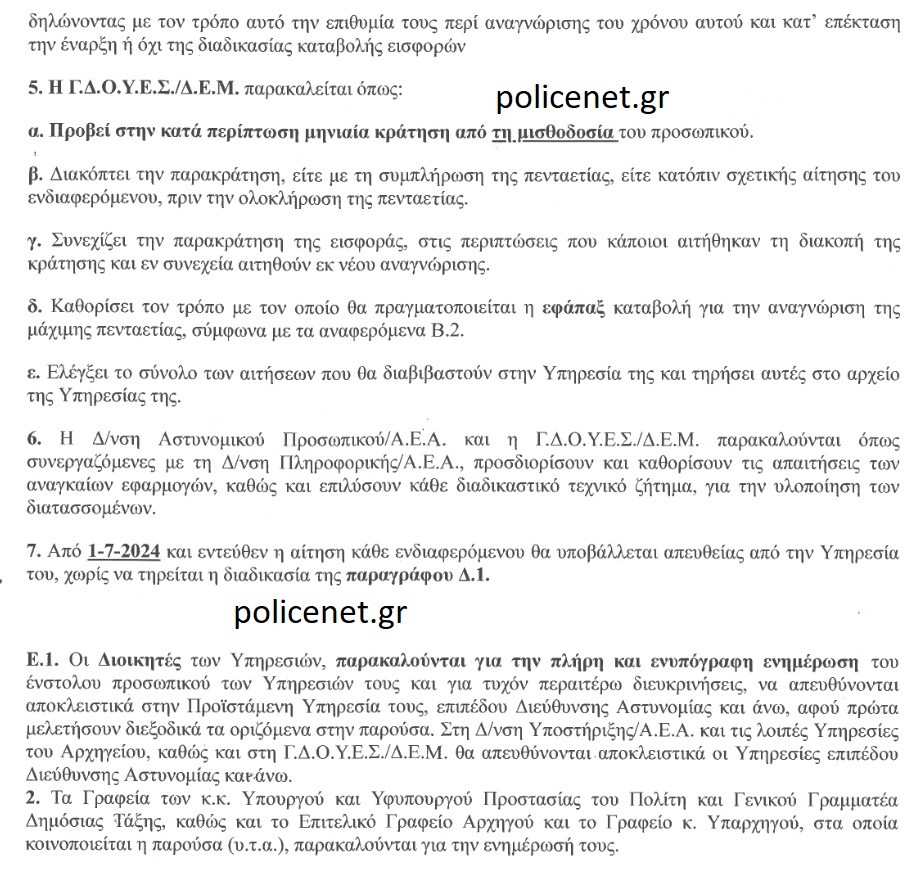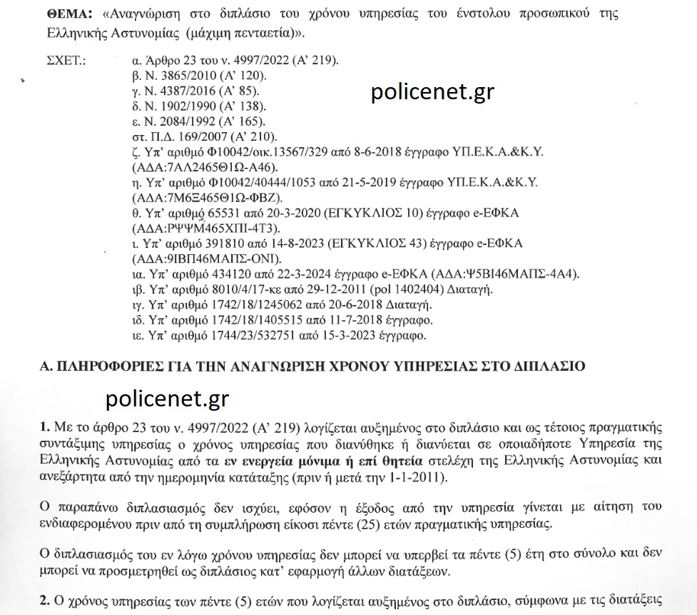 Νέο έγγραφο με διευκρινίσεις για την αναγνώριση της Μάχιμης Πενταετίας εστάλη στις Υπηρεσίες της ΕΛ.ΑΣ.