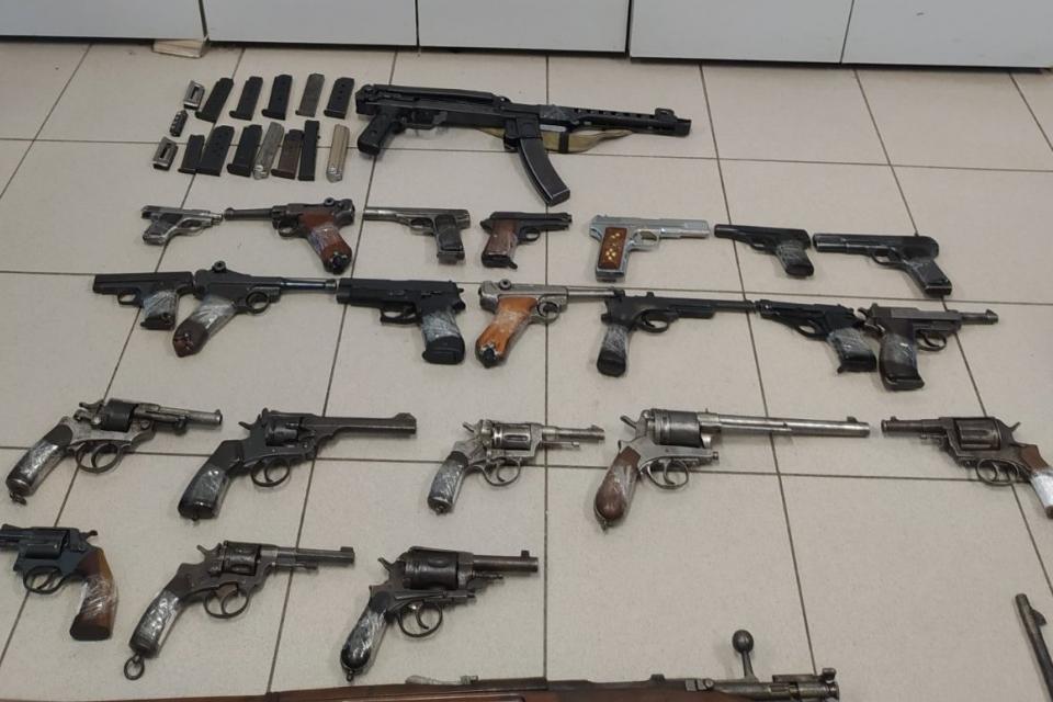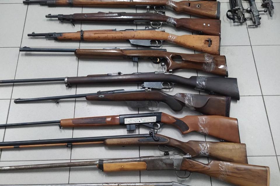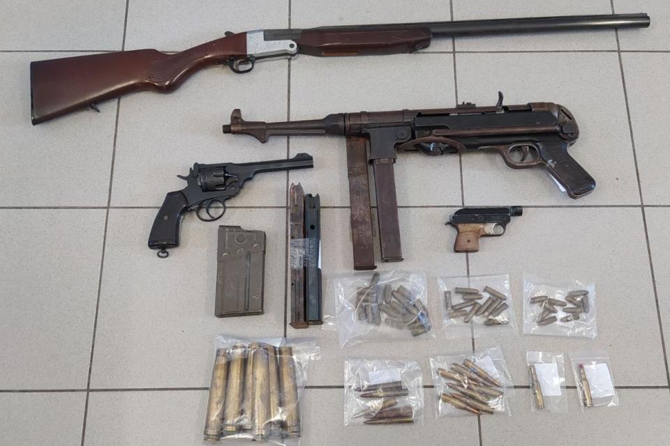 - διάφορα εξαρτήματα οπλισμού, ακαριαίο πυραγωγό σχοινίο, -2- σπρέι πιπεριού, -20- φυσίγγια κρότου, -179- πακέτα αφορολόγητων τσιγάρων και ένα παλαιό νόμισμα.